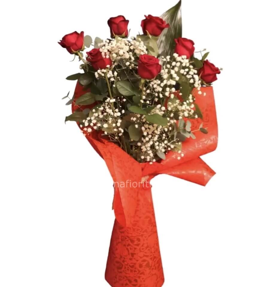 | MAZZO DI 7 ROSE ROSSE STELLO LUNGO Cod. 124535 | € 49,00 | Quantità : | |