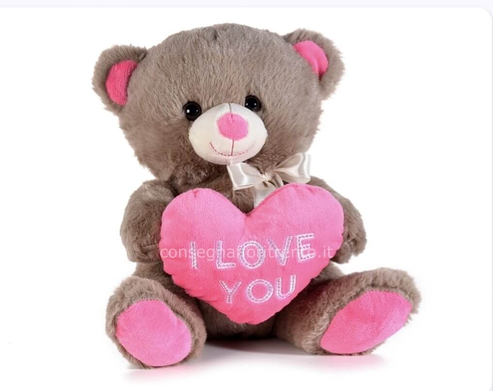 Orsetto in peluche con cuore rosa I love you e fiocco